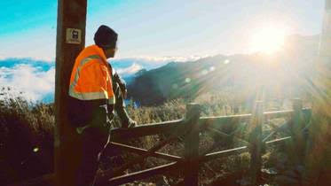 對登山者而言,這些場景再熟悉不過,但影片將它們轉化為一種深刻的生命對話。阿共的沉默與步伐,提醒人們登山不僅是運動與挑戰,更是理解自我與他人的場域。鏡頭前的主角阿共,曾跌落人生低谷,因過去的錯誤選擇逃離城市,最終選擇以協作的身份長年留在山裡。背瓦斯桶、搬物資、搭帳棚,他在步道上以雙腿證明自己還能被需要。