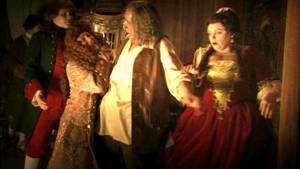 種方式來對抗天花」的勝利演出時的戲中戲。那戲中戲裡有著18世紀流行的的舞台佈置,舞台上設有旋轉輪和矮屏,而穿著戲服的演員們正賣力地演著歌頌凱瑟琳大帝對抗天花的成功。這讓為戲憋尿已久的凱瑟琳一方面高興得合不攏嘴,一方面又急得要找「方便」的地方,天真爛漫的個性展露無遺。